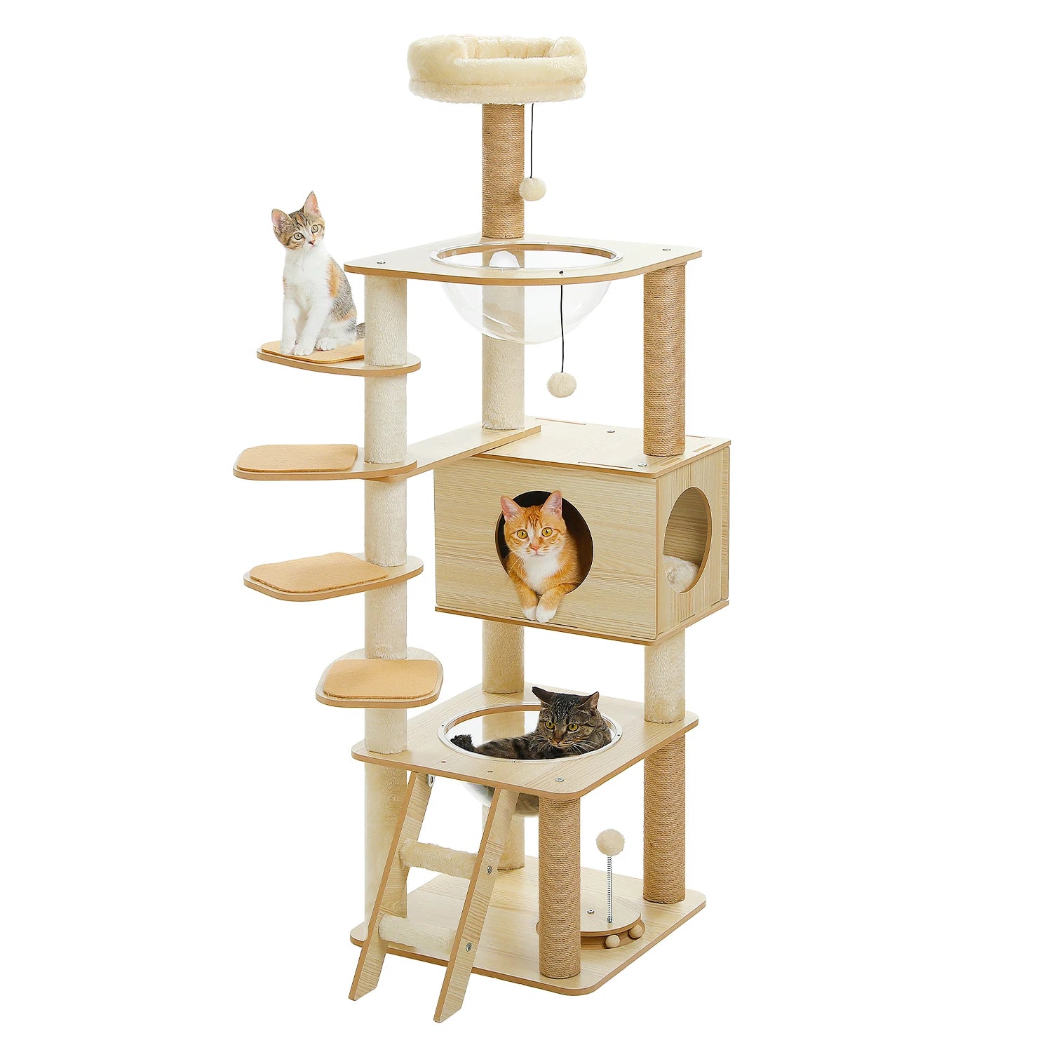 - Designed for homes with multiple cats, you gain a sturdy wood frame and five+ levels that offer dedicated climbing routes, rest spots, and cooperative play.